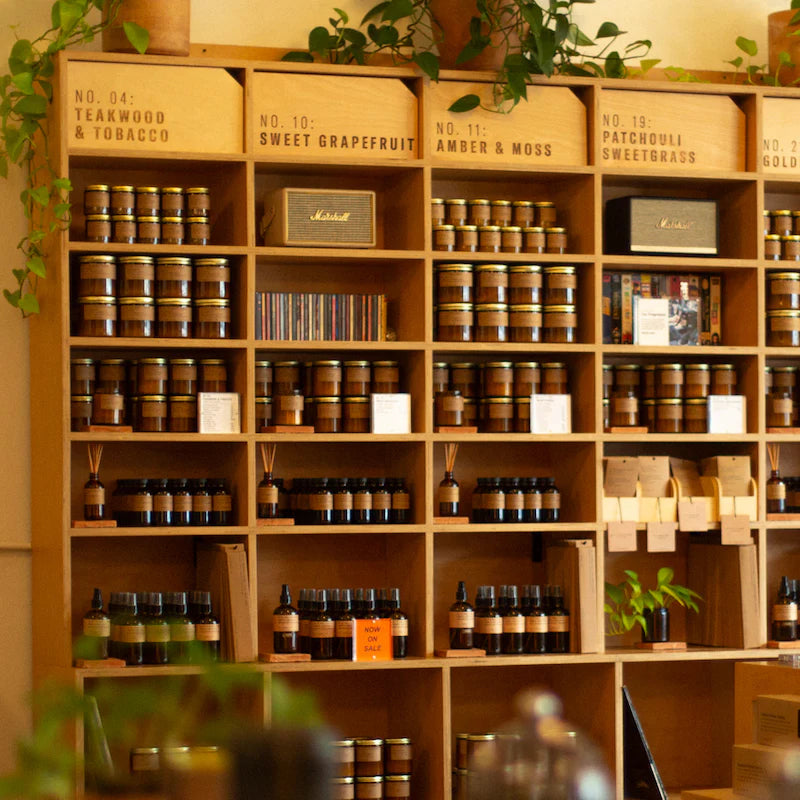 Our newly reformulated 12.5 oz Large Concentrated Candles have a higher fragrance load and scent throw, and hand-poured into apothecary-inspired amber jars with our signature kraft label and a brass lid. Meant for big rooms, spaces with high ceilings, and those who want a longer burn time.