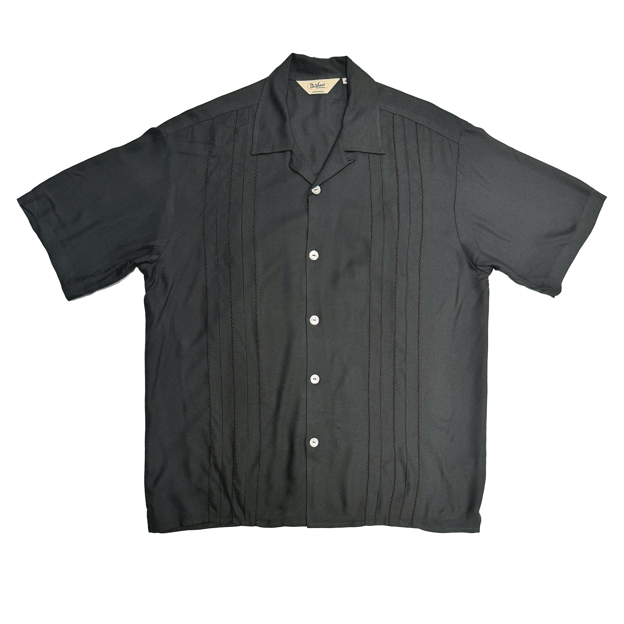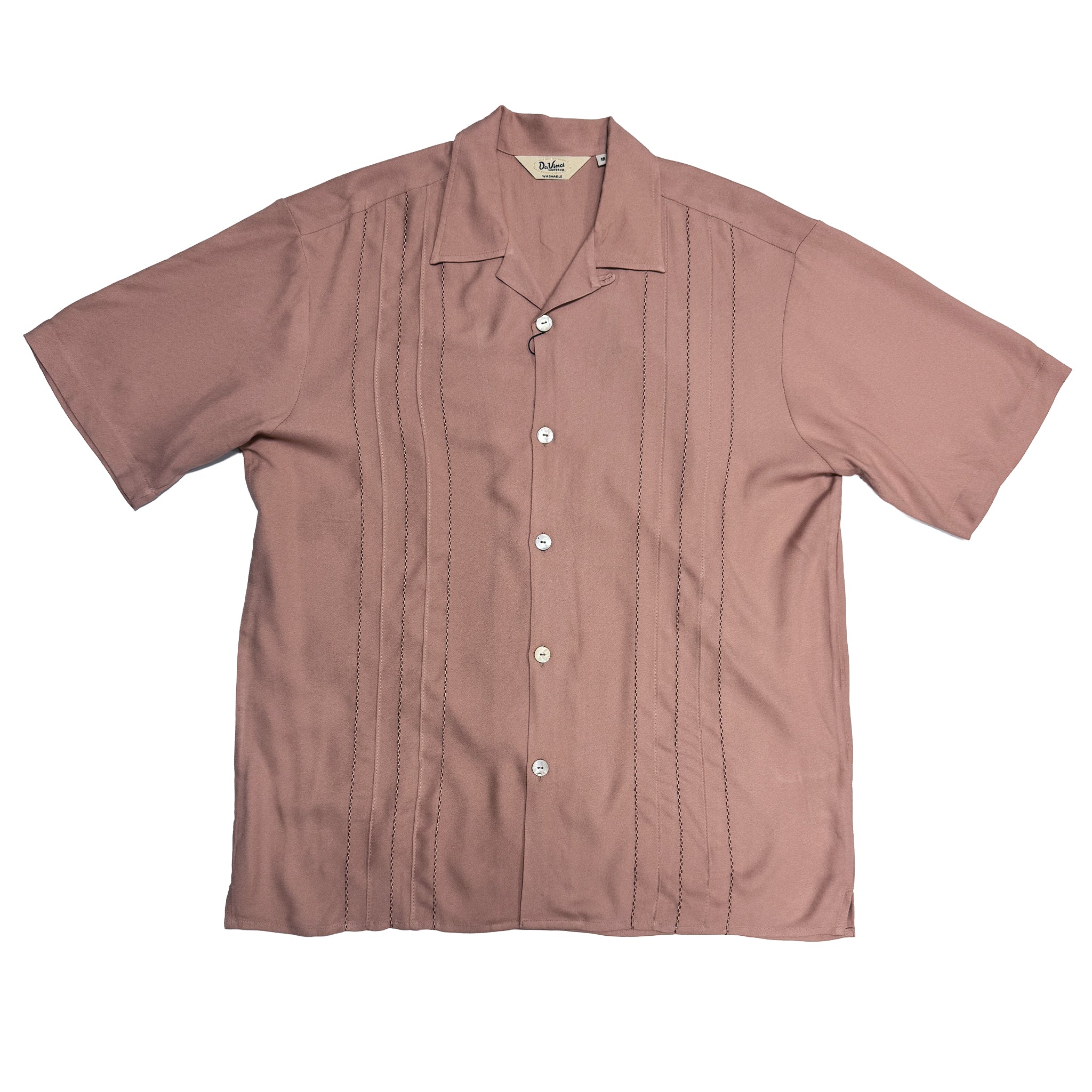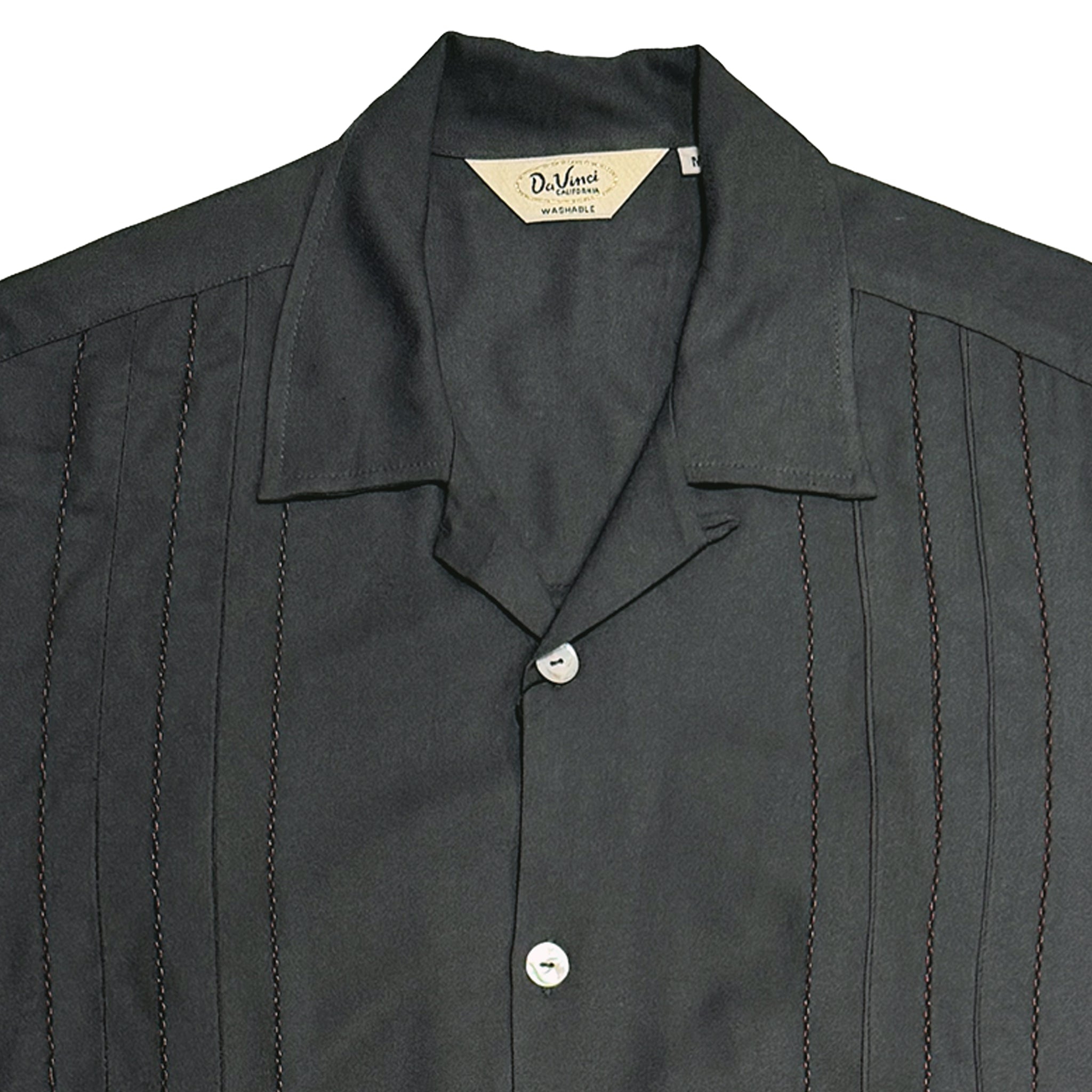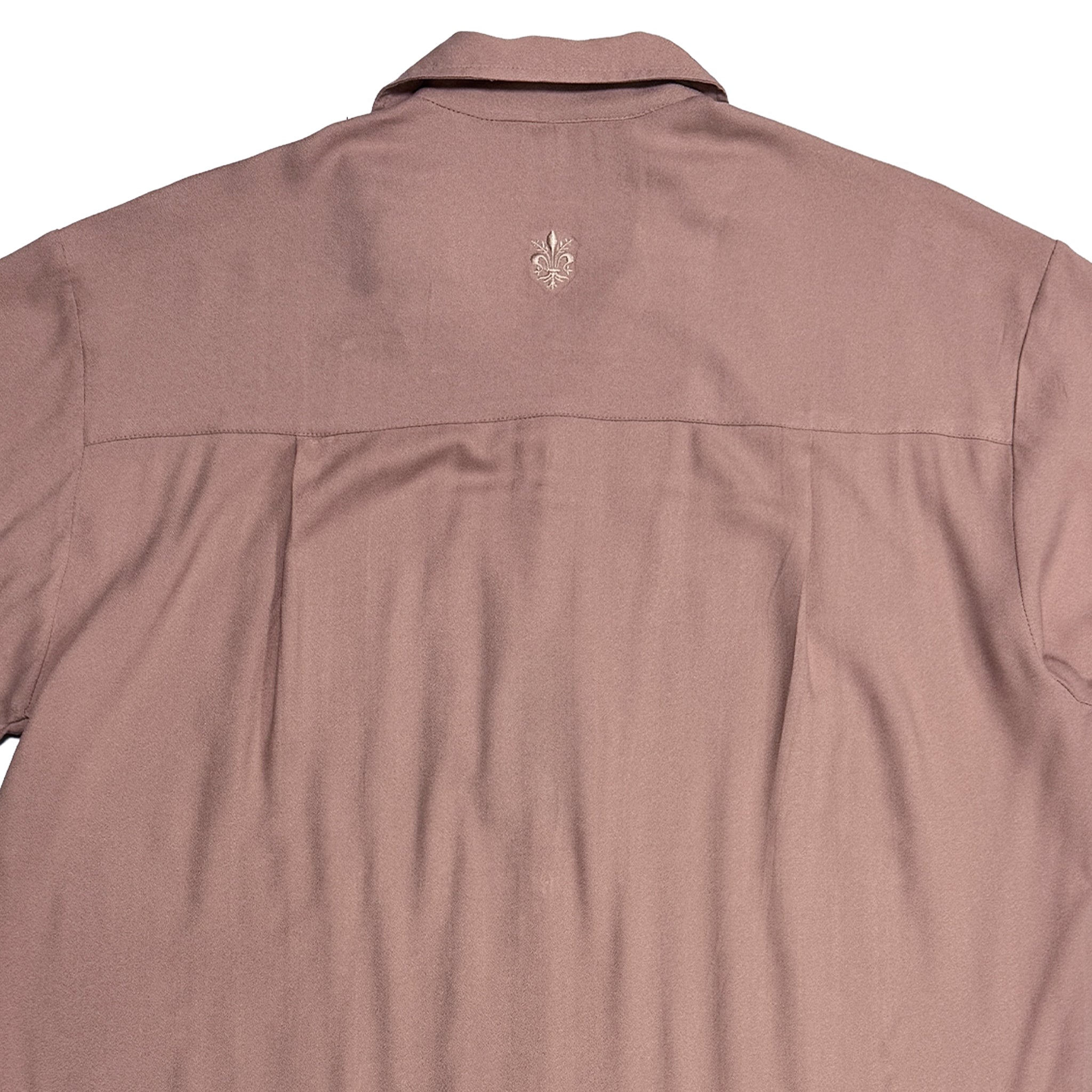 Retro-inspired front panel decorative stitch and relaxed California fit. Finished with fleur de lis embroidery on the back yoke, imitation akoya shell buttons, and a signature pyjama collar, the Decades shirt is a standout, Day or Night.